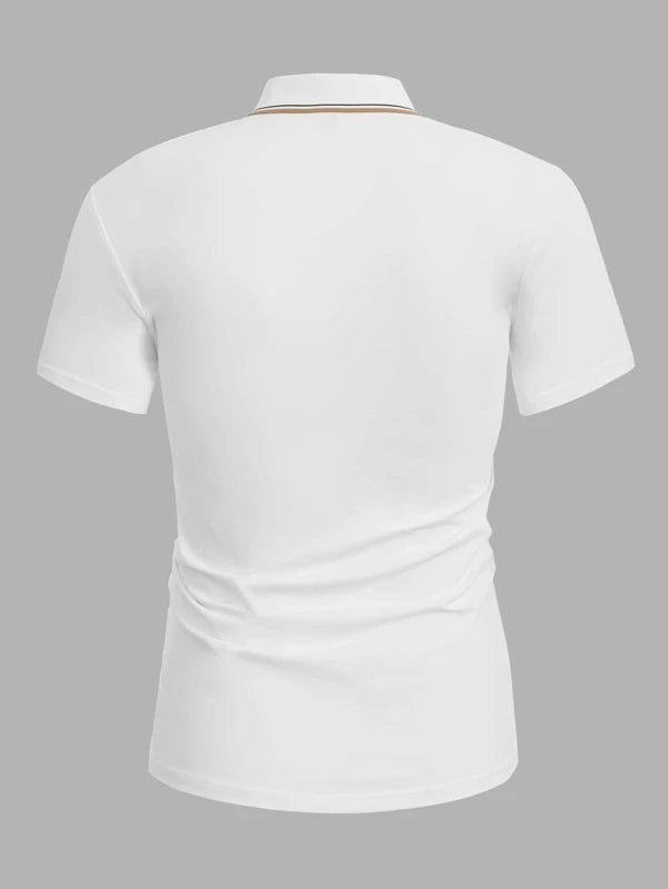 Discover timeless sophistication with the Regal Striped Trim Polo, a quintessential addition to any refined wardrobe. This elegant polo shirt features subtle striped trims that enhance its classic design, making it perfect for work or casual settings. Ideal for husbands who appreciate both style and comfort, the Regal Polo offers a blend of luxury and versatility.