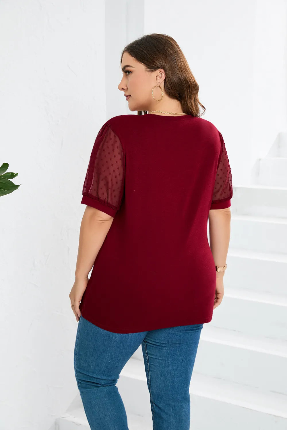 Elara | Sheer Sleeve V-Neck Top