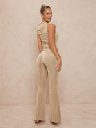 The Arielle Set embodies effortless boho luxury with a modern twist. Featuring an asymmetric bodycon top and flowing wide-leg trousers with subtle metal detailing, this set is perfect for beach getaways, outdoor weddings, and elegant summer events, offering timeless sophistication.