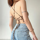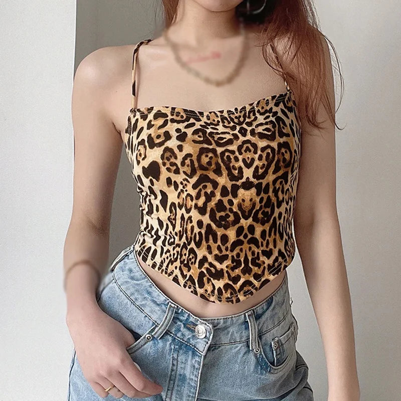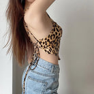 Embrace summer style with Savanna Leopard Print Halter Vest, featuring an irregular triple-cornered design for a touch of exotic flair. This fashion-forward piece combines sultry lace-up detailing with a bold leopard print, perfect for making a statement at any summer event. Enjoy a chic and versatile look with this unique, wrapped top.