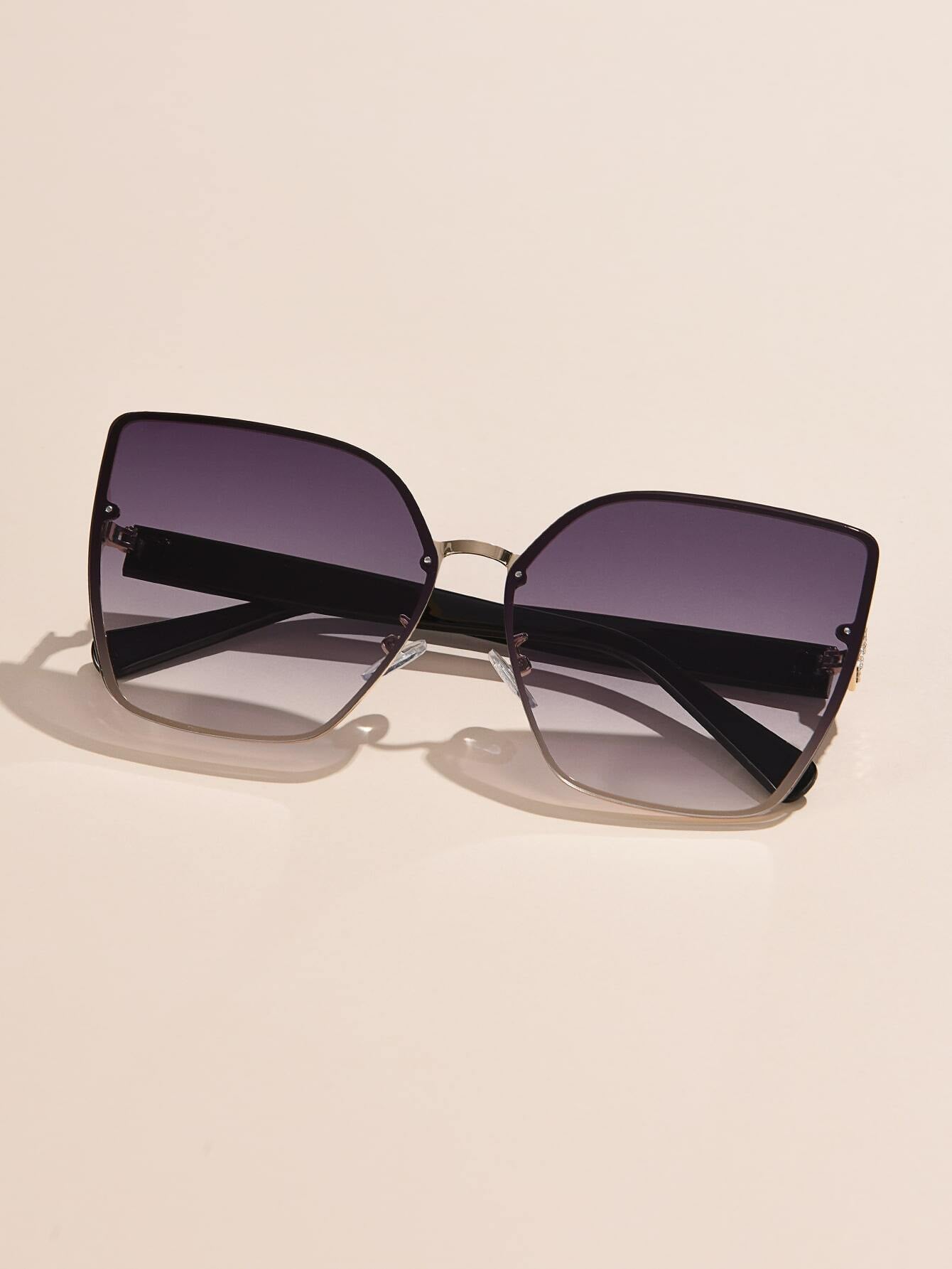 Design: Oversized cat-eye shape with wrap-around frame and rhinestones.