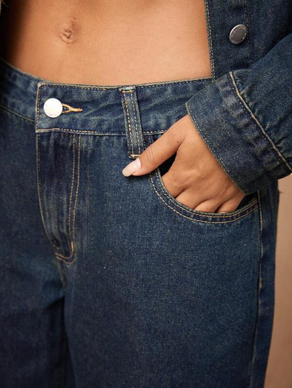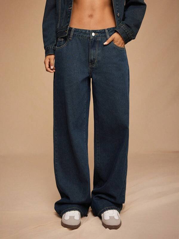 - Design: Straight-leg cut with a refined navy wash for a chic, polished appearance.